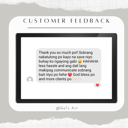 My artistic journey led me to explore the world of digital art, ​where I discovered the potential to turn my talent into a ​source of income. In 2021, I created my own Facebook ​page, "Gel's Art," and started selling my digital artworks on ​social media platforms such as Facebook, Instagram, ​TikTok, and the RaketPH website. My work primarily ​includes vector art, digital posters, slogans, infographics, ​customized flyers, business packages, logos, and more. I ​am proud to have a substantial local clientele, mainly ​consisting of students.